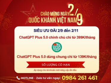 Chào mừng Quốc khánh 2/9, nhận ngay ưu đãi đặc biệt cho tài khoản ChatGPT Plus 5.0: chính chủ chỉ 449k/tháng, dùng chung chỉ 149k/tháng. Áp dụng cho đăng ký mới, thanh toán 3 tháng